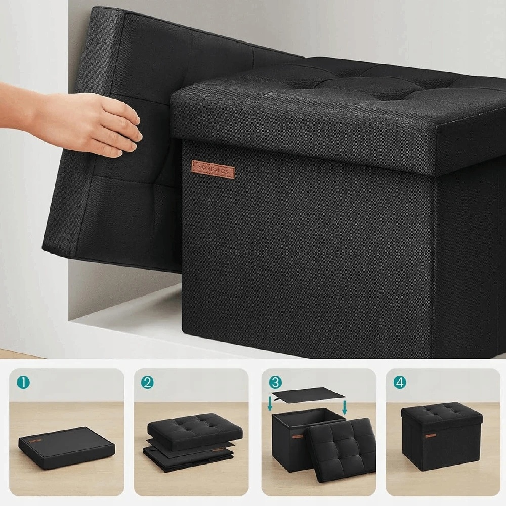 Ławka ZE SCHOWKIEM do siedzenia 31 x 31 x 41 PUFA podnóżek TABORET CZARNY