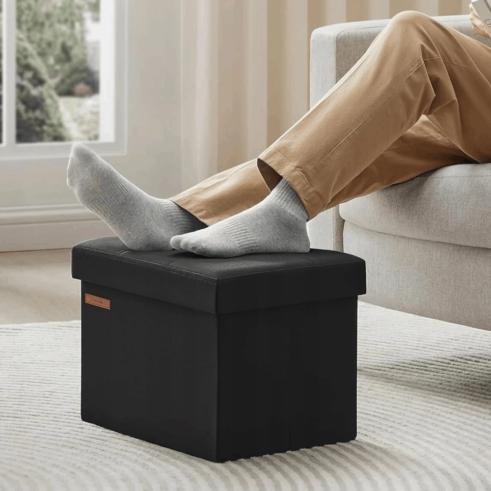 - Wielofunkcyjność 3w1 – elegancka pufa, wygodny podnóżek i pojemny schowek w jednym stylowym meblu.