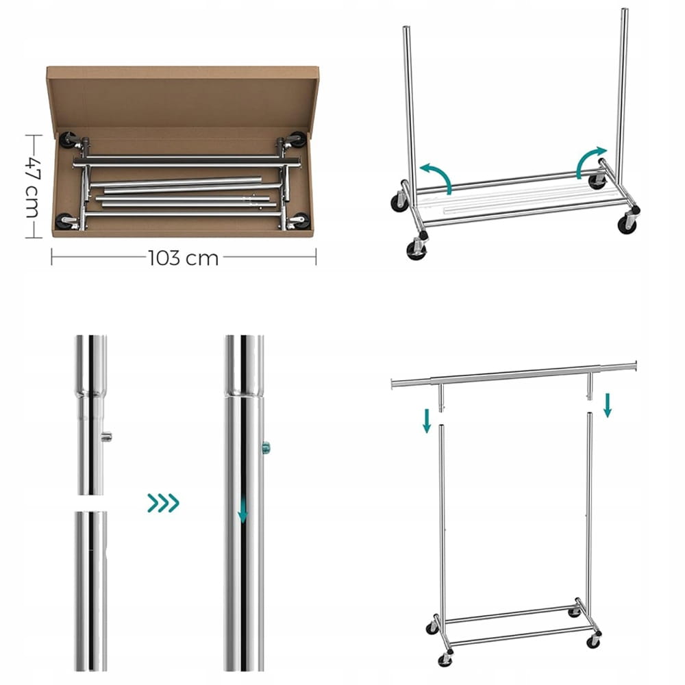 Dbamy o Twój czas, dlatego montaż wieszaka Songmics jest prosty i nie wymaga użycia skomplikowanych narzędzi. Kilka ruchów i Twój nowy system przechowywania jest gotowy. Pielęgnacja chromowanej powierzchni ogranicza się do przetarcia miękką ściereczką, co pozwala zachować lustrzany blask na lata. Gdy wieszak nie jest potrzebny, jego dolną część można złożyć, oszczędzając cenną przestrzeń w domu.