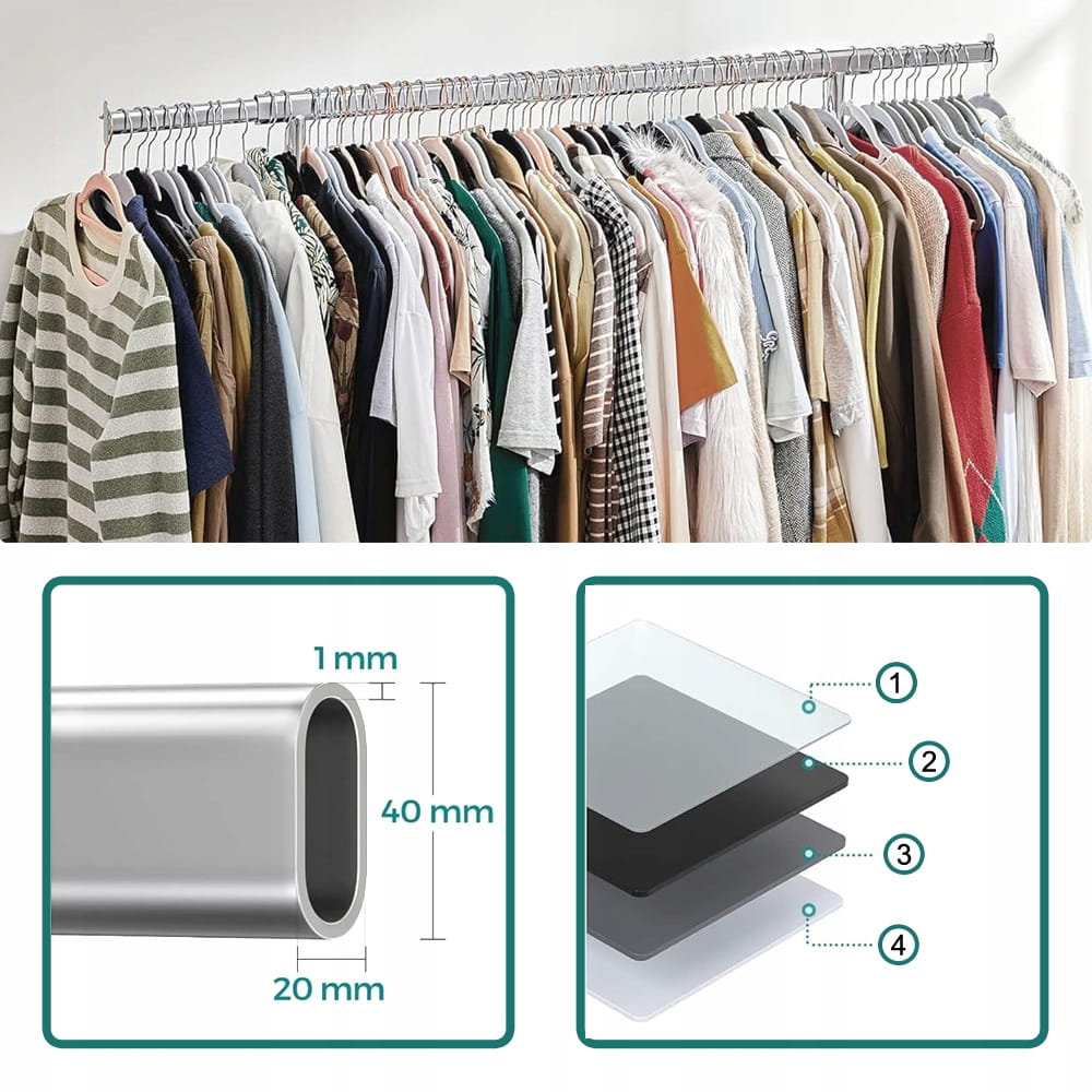 Ten mebel do salonu lub garderoby został stworzony, by sprostać najcięższym wyzwaniom. Górny drążek wykonany z płaskiej rury gwarantuje stabilność, której nie znajdziesz w standardowych rozwiązaniach.