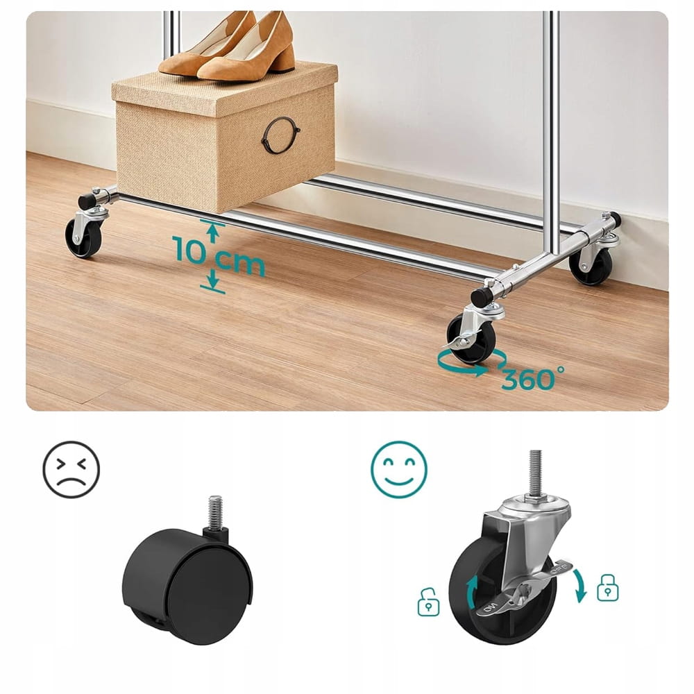 Odkryj nowy wymiar organizacji w swoim domu dzięki mobilnemu wieszakowi marki Songmics. Ten elegancki, srebrny stojak to nie tylko praktyczne rozwiązanie, ale i stylowy element wyposażenia, który idealnie wpisuje się w nowoczesny design. Zaprojektowany z myślą o wymagających użytkownikach, łączy w sobie luksusowy wygląd chromowanej stali z niespotykaną funkcjonalnością, tworząc komfortowe wnętrze wolne od nieładu.