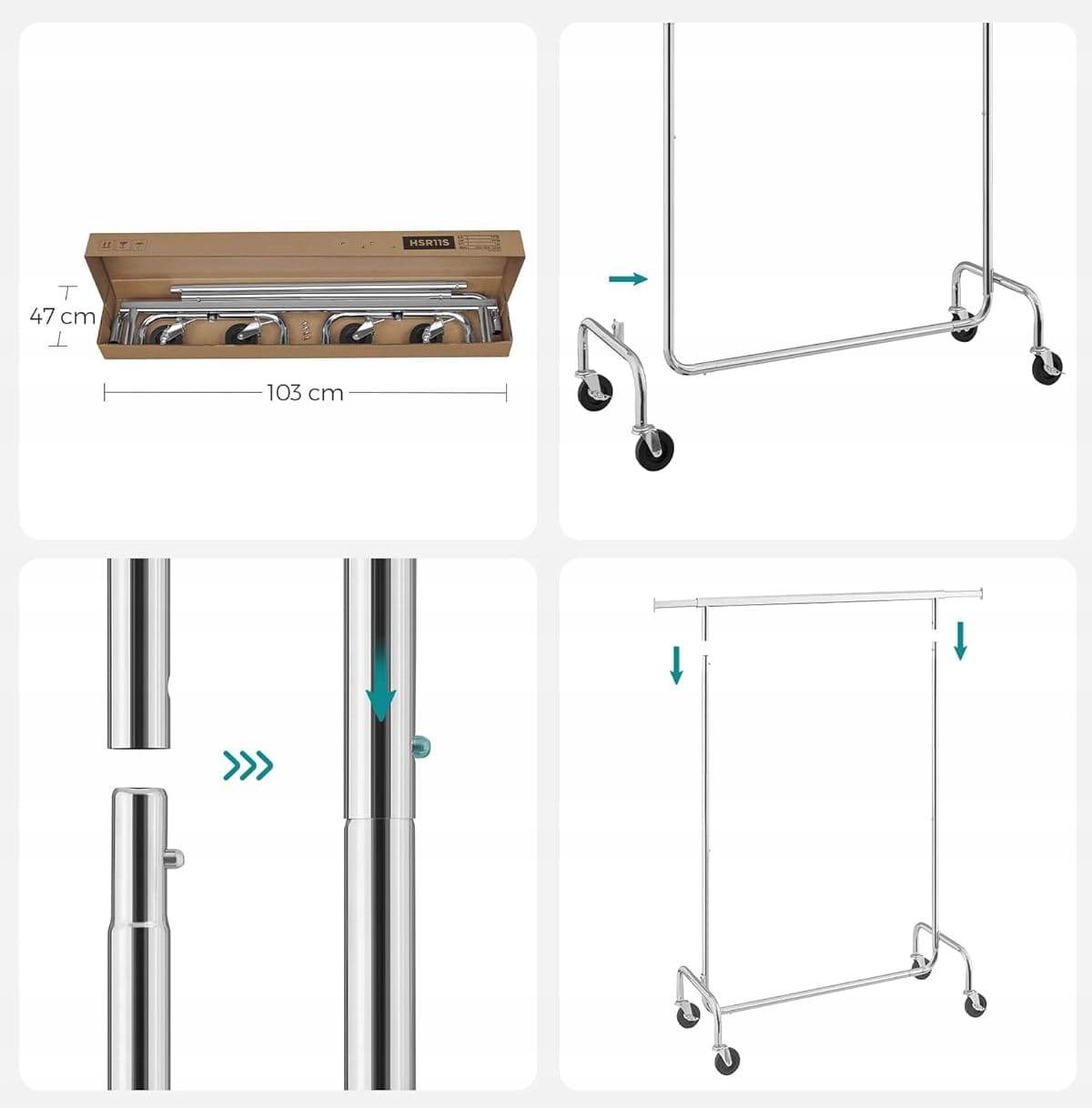Dbamy o Twój czas, dlatego montaż wieszaka jest niezwykle prosty i nie wymaga użycia skomplikowanych narzędzi ani wkrętów. W kilku prostych krokach stworzysz stabilną konstrukcję gotową do użycia. Pielęgnacja ogranicza się do przecierania powierzchni miękką, wilgotną ściereczką, co pozwoli zachować srebrzysty blask chromu przez długie lata. Gdy wieszak nie jest potrzebny, można go łatwo zdemontować, oszczędzając cenne miejsce w domu.