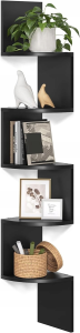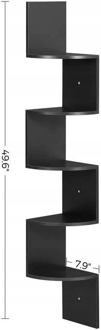 Półka narożna drewniana 5 półek industrialna czarna do salonu i kuchni