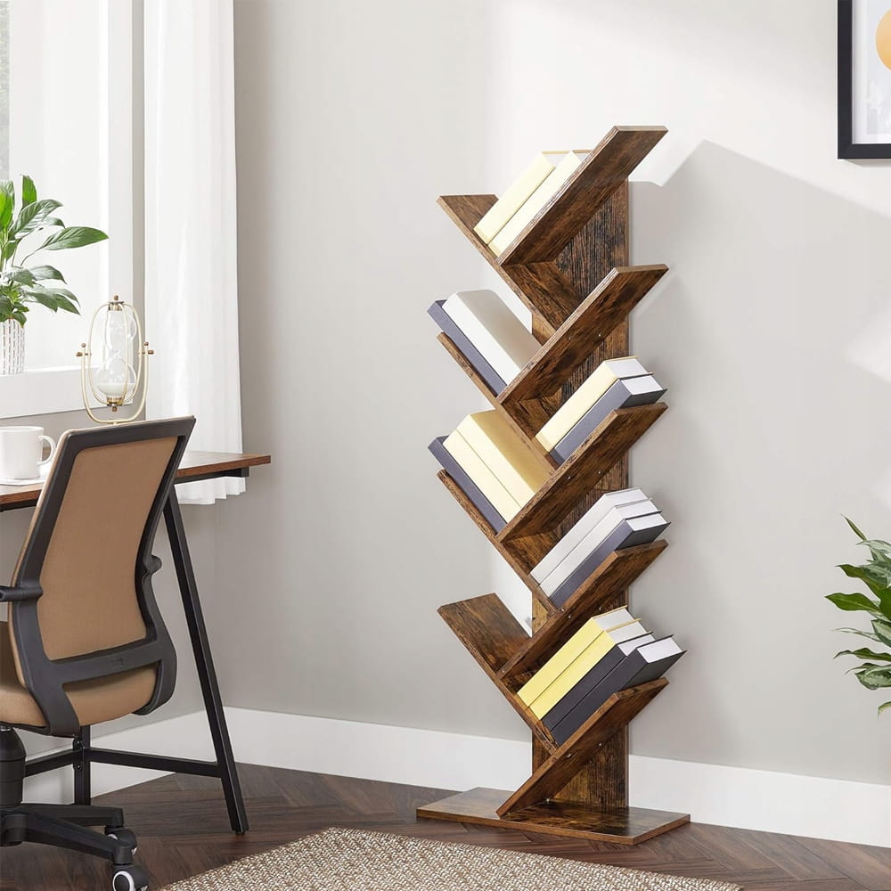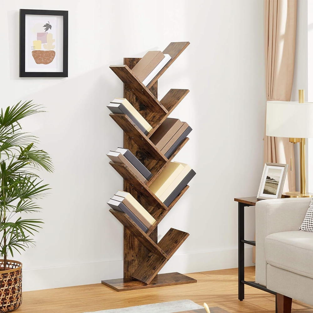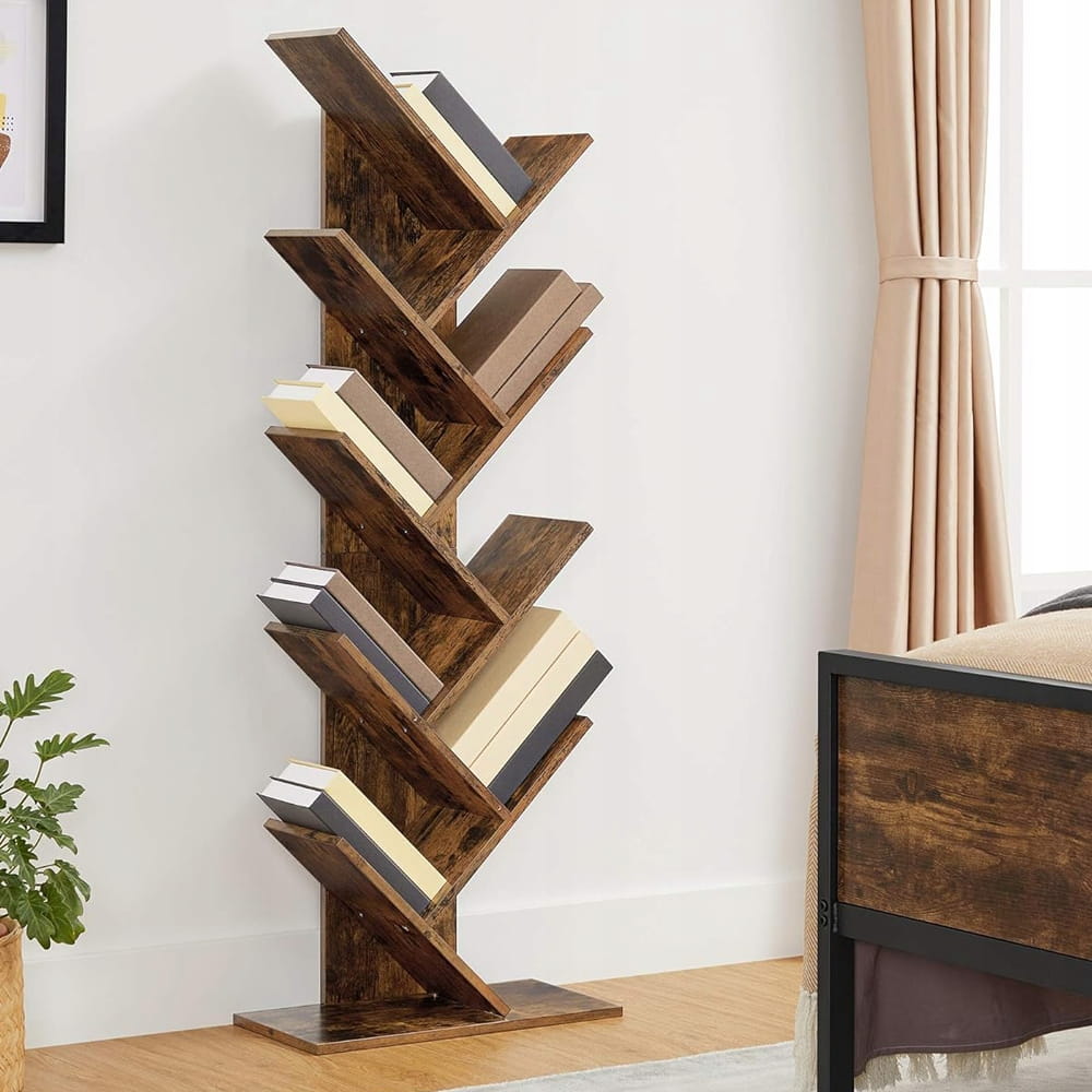 Regał na książki STOJAK DRZEWKO 8 poziomów do salonu 141,5 cm brązowy LOFT