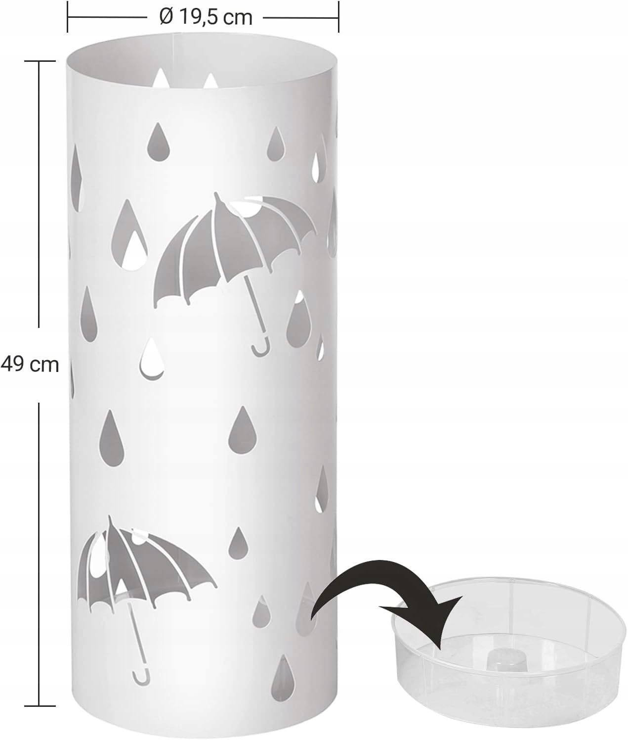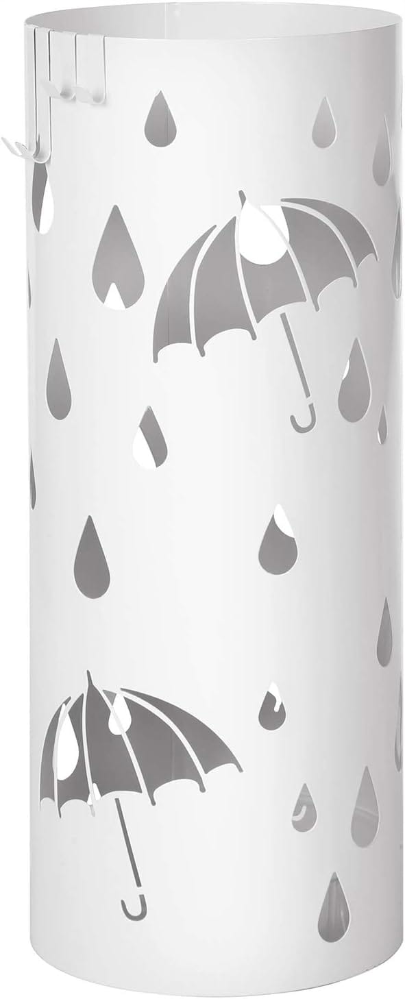 Stojak na parasole METALOWY 49x19,5 cm BIAŁY kosz z ociekaczem +HACZYKI