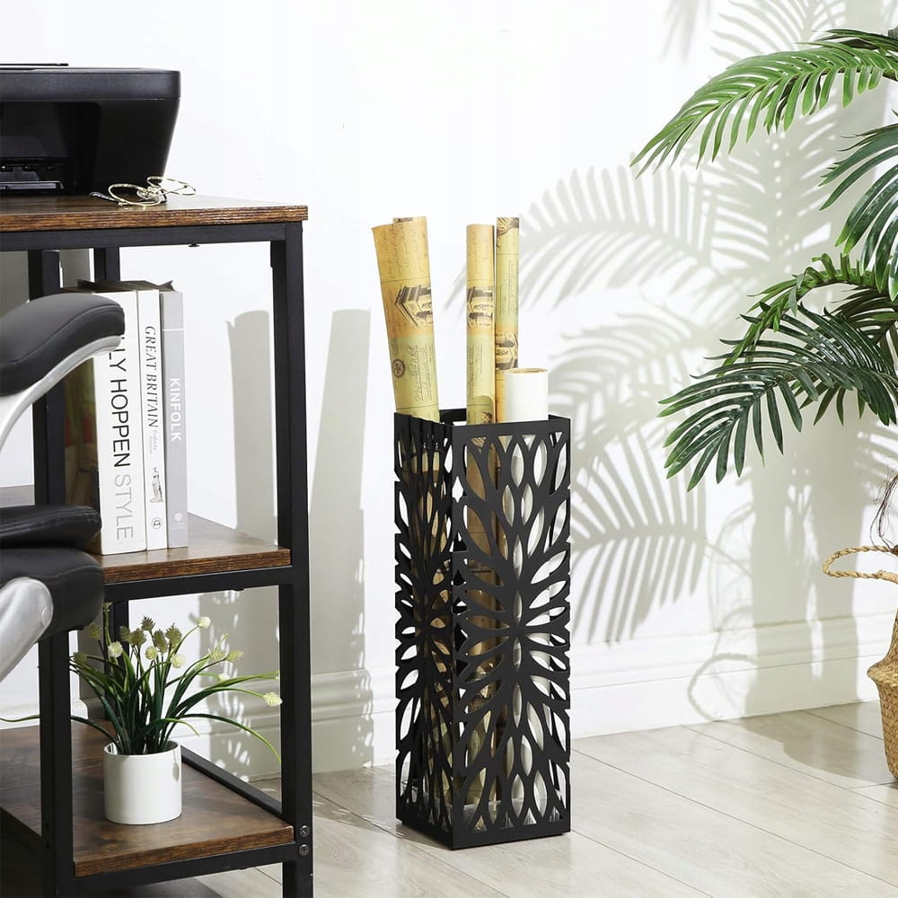 Wprowadź do swojego przedpokoju ład i elegancję dzięki metalowemu stojakowi na parasole marki Songmics. Ten stylowy dodatek to nie tylko praktyczny przedmiot codziennego użytku, ale przede wszystkim element, który podkreśla nowoczesny design Twojego wnętrza. Wykonany z dbałością o każdy detal, łączy w sobie surowość metalu z lekkością ażurowej formy, tworząc idealny wypoczynek dla Twoich akcesoriów po deszczowym spacerze.