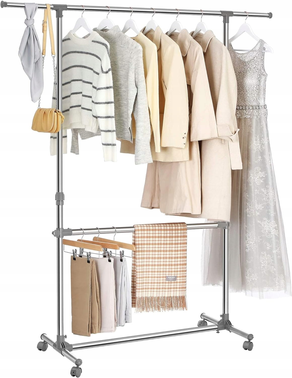 Wieszak na ubrania STOJĄCY REGULOWANA WYSOKOŚĆ stojak na kółkach 101-165 cm