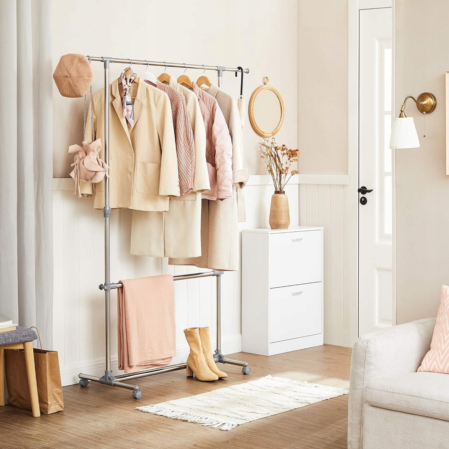 Odkryj nowy wymiar organizacji z mobilnym wieszakiem marki Songmics, który łączy w sobie funkcjonalność i nowoczesny design. Ten elegancki stojak to idealne rozwiązanie dla osób ceniących komfortowe wnętrze i porządek. Dzięki zastosowaniu wysokiej jakości stali nierdzewnej, mebel ten nie tylko prezentuje się luksusowo, ale jest również niezwykle odporny na korozję i odkształcenia, co czyni go inwestycją na lata.